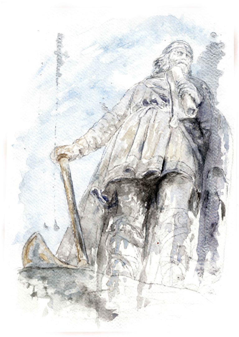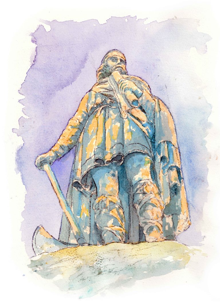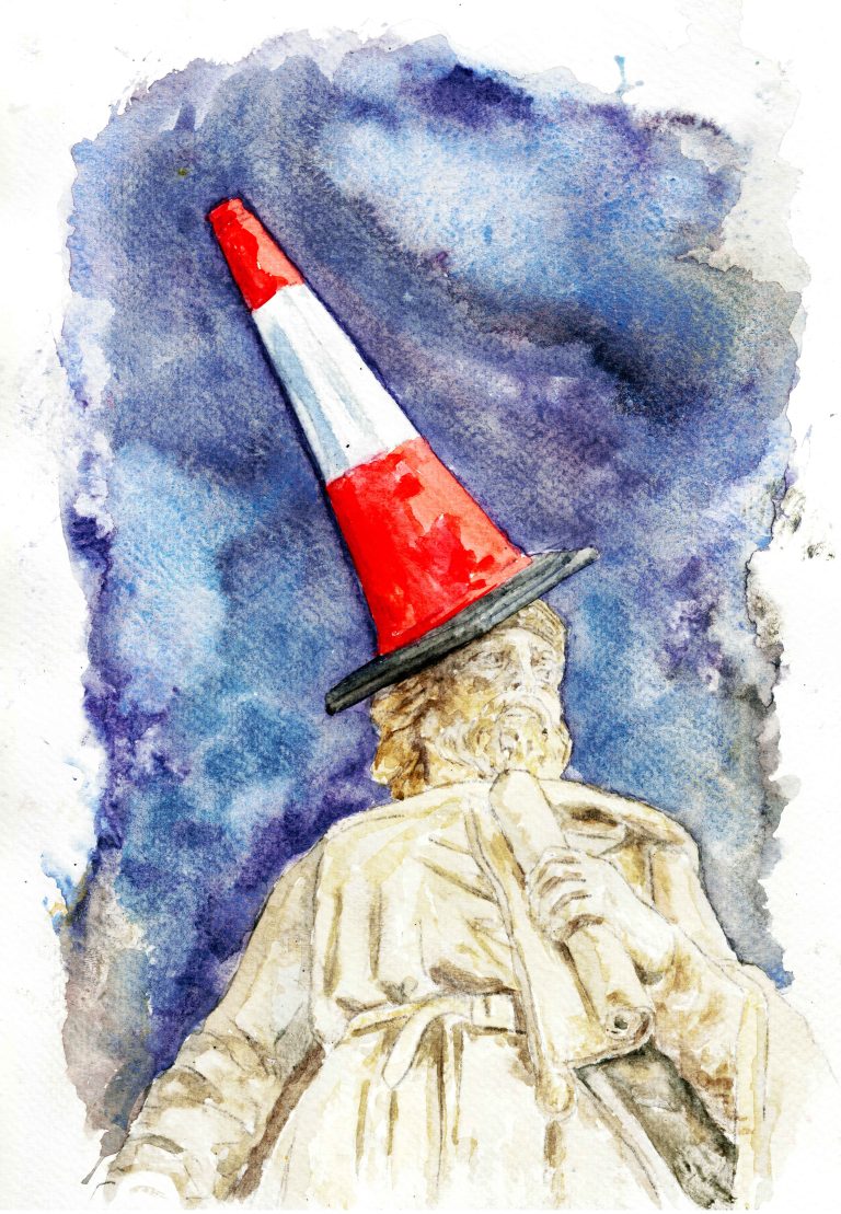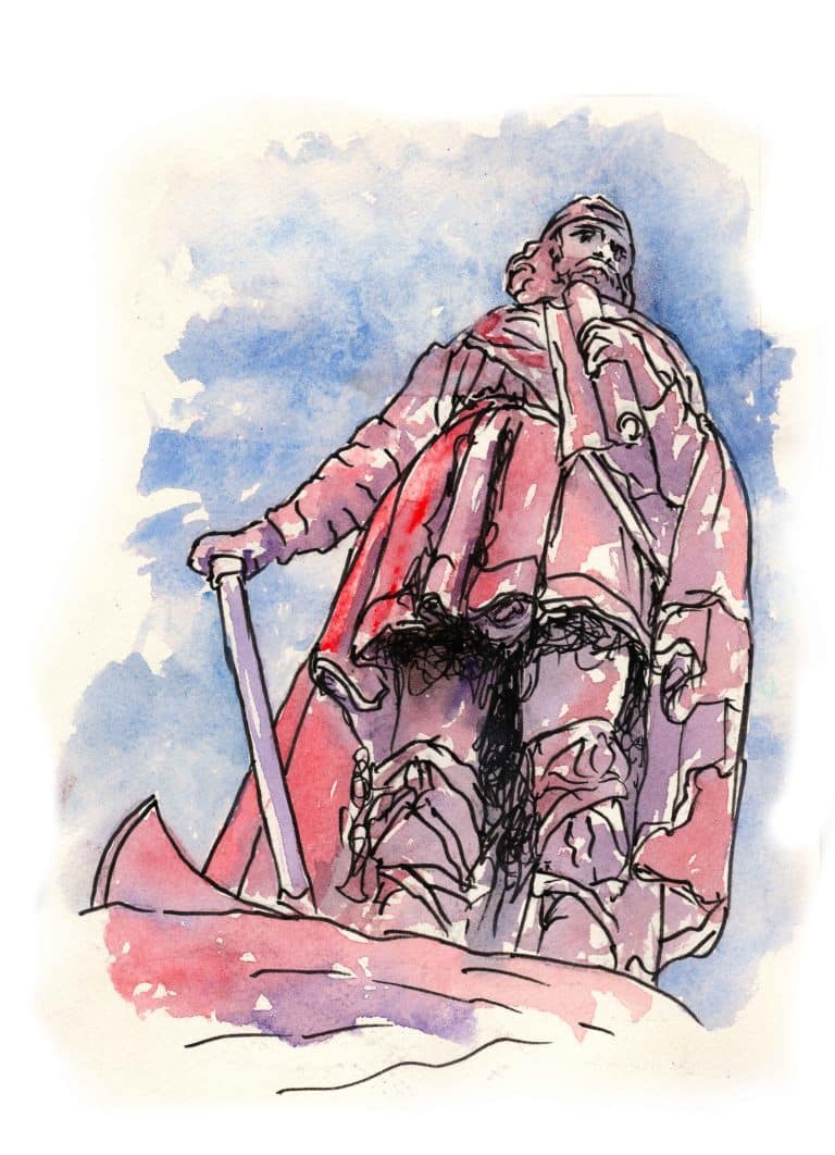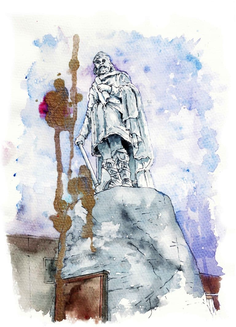 King Alfred's statue, Day time seasonal attire, Wantage, UK